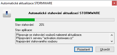 Program znovu spusťte, dojde k ověření verze aktualizace a rozbalení aktualizačních souborů do složky Update, poté se zobrazí dialog: