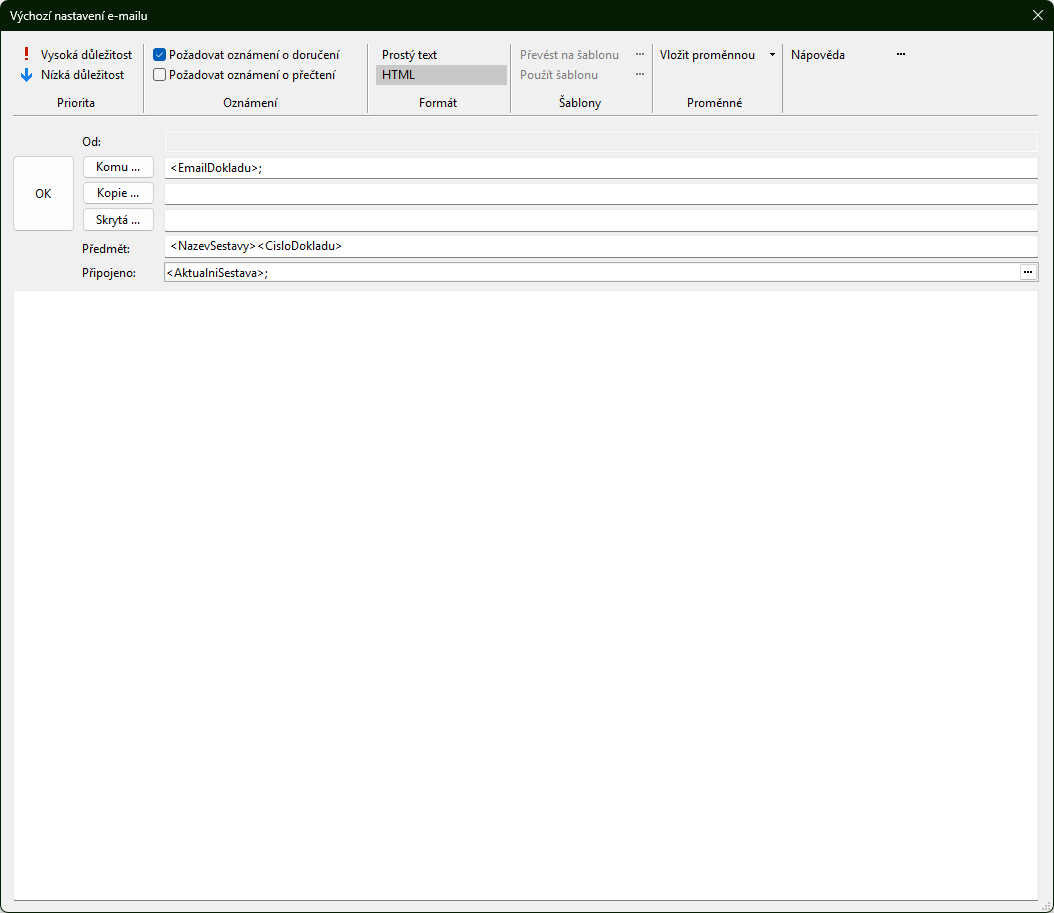 POHODA používá pro úpravu textů externí WYSIWYG editor.