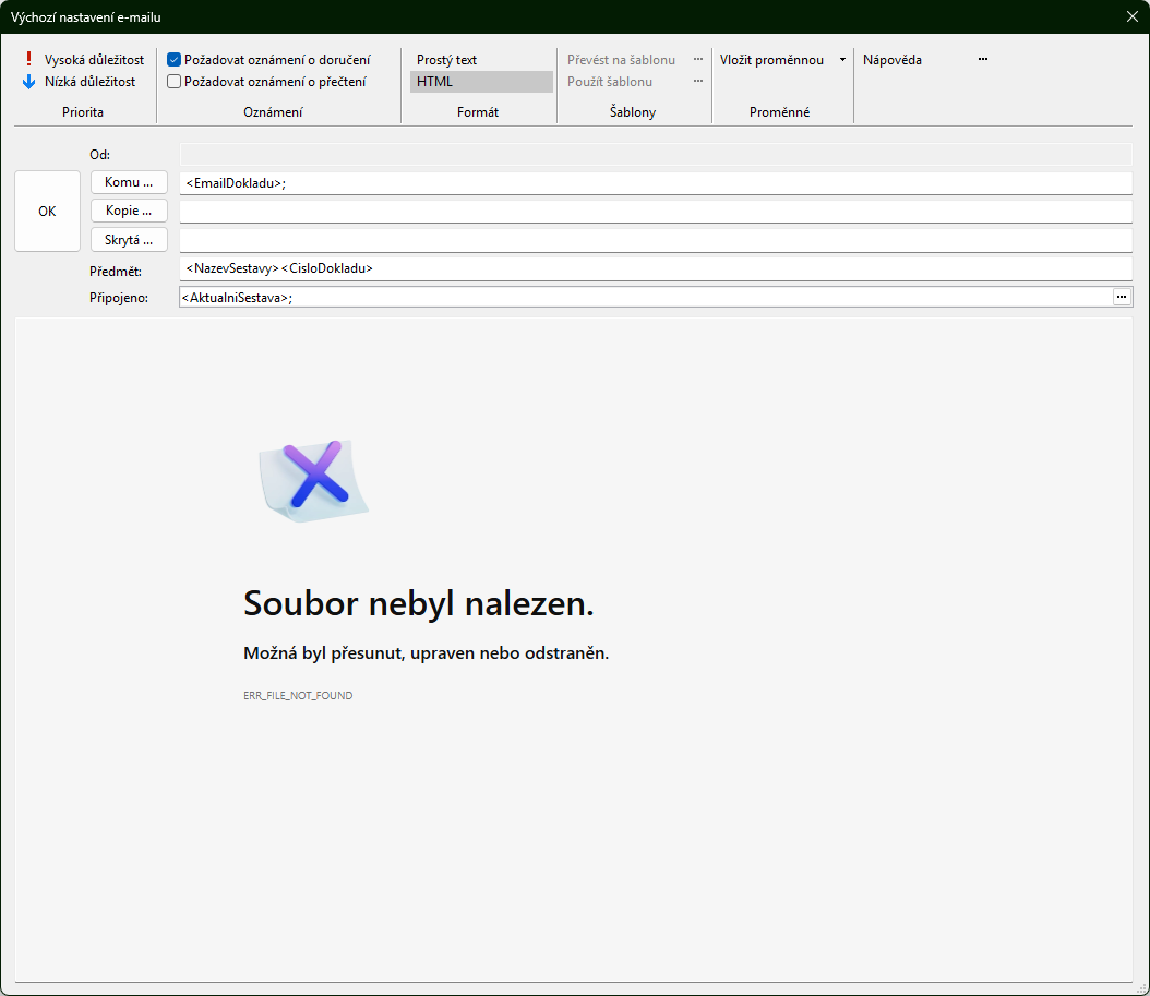 Proč nelze při odeslání emailu editovat tělo zprávy?