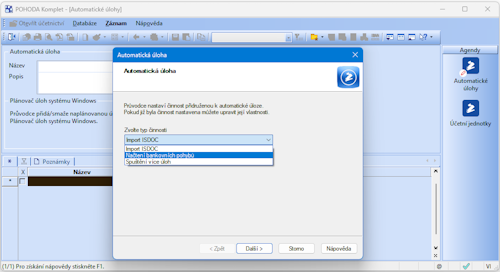 Do nabídky činností pro automatické úlohy jsme přidali možnost Načtení bankovních pohybů.