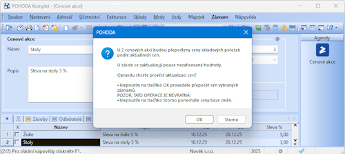 Používáte agendu Cenové akce? Pak vás jistě potěší možnost hromadného přepočtu cen položek u více cenových akcí najednou.