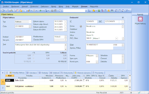 Sjednotili jsme řazení záznamů v tabulce agendy s položkami dokladu.