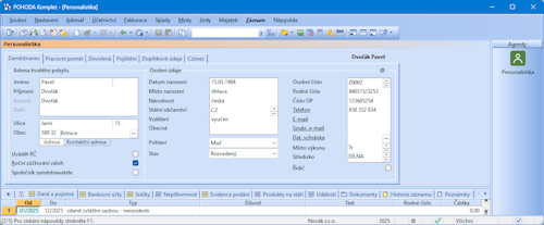 V agendě Personalistika na záložce Zaměstnanec přibude nové pole pro zadání OIČ (osobní identifikační číslo zaměstnance) přidělované Českou správou sociálního zabezpečení (ČSSZ). Na záložce Pracovní poměr nově najdete pole ID PPV (identifikátor pracovněprávního vztahu). Jedná se o unikátní kód, který se váže k OIČ a variabilnímu symbolu zaměstnavatele. Pro měsíční hlášení zaměstnavatele bude tento údaj bude povinný.