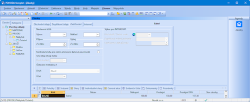 Při účtování skladů způsobem A jsme v agendě Zásoby zpřístupnili pole Náklad i pro zásoby typu Služba a Textová. U těchto typů se pole nepoužívá pro účtování výdeje zásob, ale pro účtování nákladů při nákupu, obdobně jako při vedení skladů způsobem B.