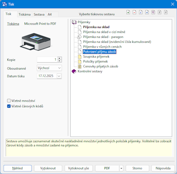 Do agendy Příjemky jsme přidali tiskovou sestavu Potvrzení příjmu zásob.